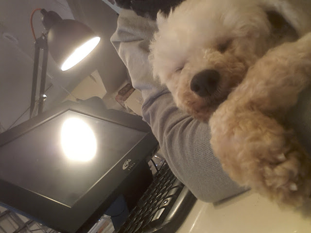 Muru oli mukana kokouksessa tänään siihen asti kun iskä pääsi töistä ja kävi pelastamassa hänet sääntöviidakosta. Hetken päästä sain tämän ihastuttavan kuvan puhelimeeni... Alkoi sihteerin muistiinpanot horjua, niin syvälle iski tämä kuvan ilme. Ihana pieni kartanlukija.